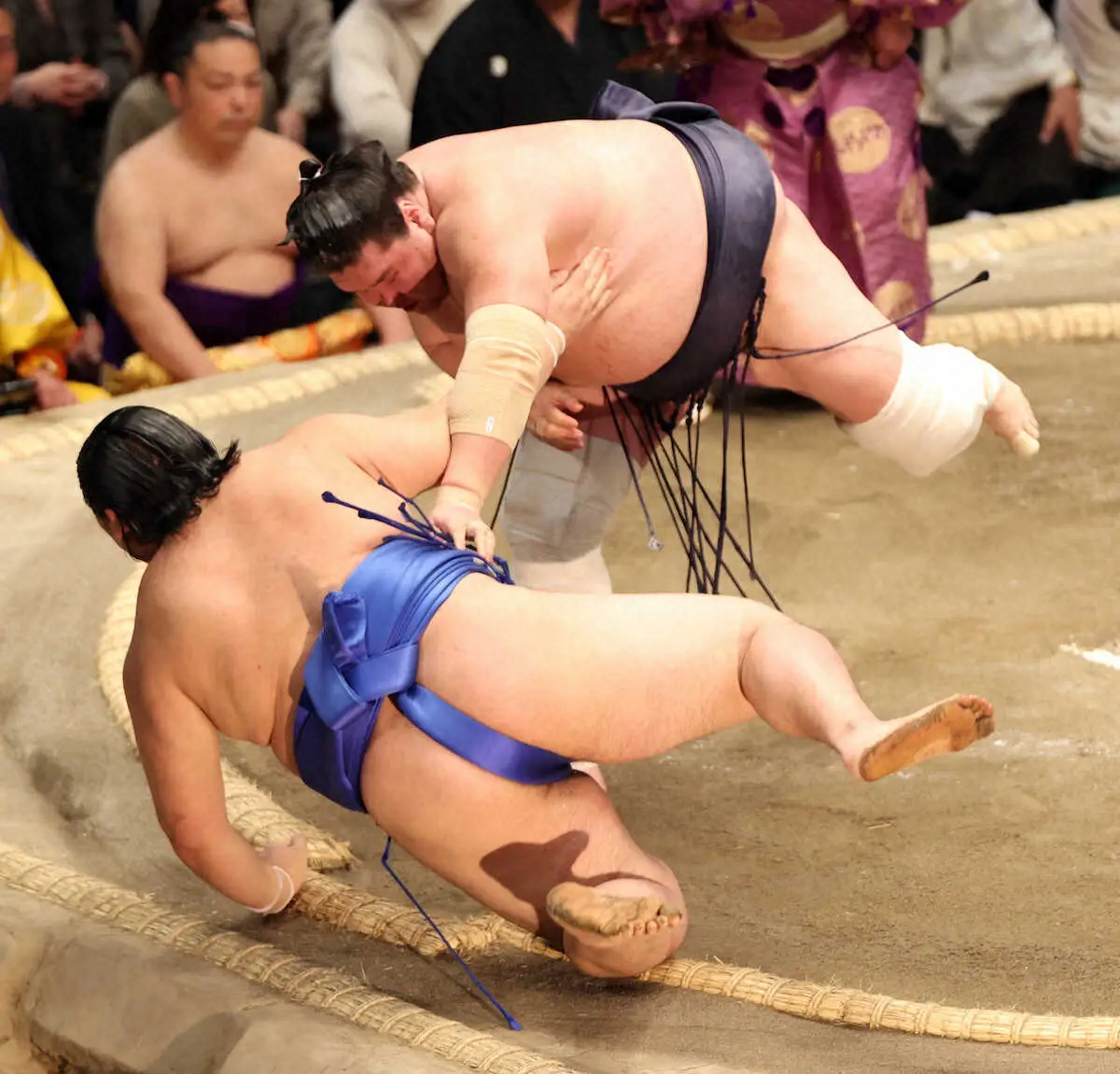 横綱のプライドがにじんだ。大の里の出足に後退したが、得意の左上手から土俵下まで投げ飛ばした取組後。昭和以降3位タイの所要4場所で新入幕し、14年秋場所の逸ノ城以来10年ぶりで横綱戦に挑んだ新鋭の印象を「勢いがあるといっても、まだ8番しか勝ってないじゃん」と語った。