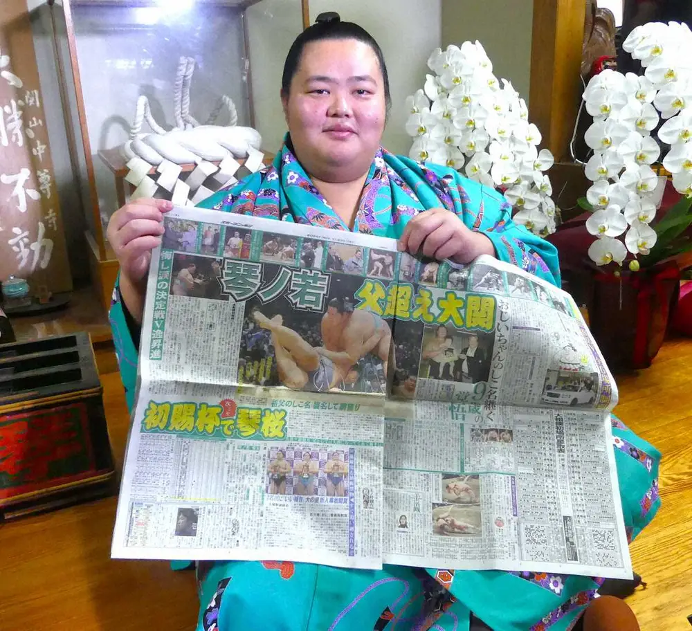 悔し涙の千秋楽から一夜明け、琴ノ若は穏やかな笑顔を見せた。会見場で目にしたのは「琴桜」と書かれた明け荷。60年以上前、祖父の元横綱・琴桜が関取に昇進した頃から使用していた物を、父で師匠の佐渡ケ嶽親方(元関脇・琴ノ若)がサプライズで用意した。新大関となる26歳は「自分よりも2倍以上生きてますね」と笑いながら、歴史の重みを感じた。