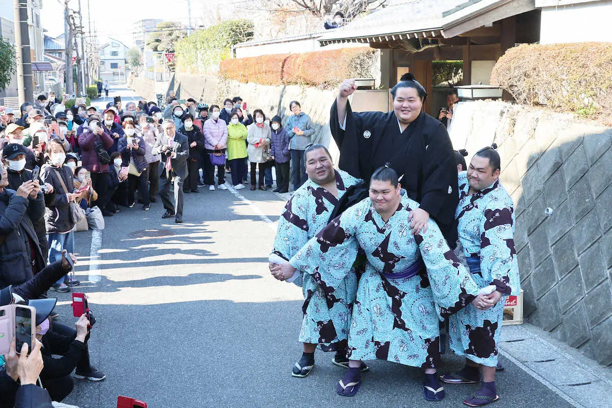 埼玉栄高相撲部の1年先輩にあたる貴景勝は19年3月、大関昇進伝達式の口上で「感謝の気持ちと思いやりを忘れず相撲道に精進して参ります」と述べていた。この日、伝達式を見守った同校相撲部の山田道紀監督(58)は「“感謝の気持ち”ね。6年間のことを言葉に出してくれている」と感慨深い様子。教え子がともに部訓を口上に入れたことに「同じ屋根の下で同じ釜の飯、理屈じゃない世界。その言葉に鳥肌が立ちましたね」と万感の思いだった。