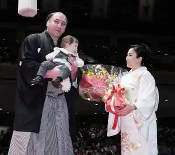 「ありがとう」「お疲れ様」の掛け声が止まないなか、式の最後には英美夫人と昨年4月に誕生した長男、春伶馬(ハレバ)ちゃんが花束を授与。元栃ノ心は「2005年、日本に来ましたけど1人も知っている人がいませんでした。きょうはこんなにたくさんいます」と述べると館内は再び万雷の拍手に包まれた。そして「17年間、たくさんの応援をいただき、そのおかげで頑張れたと思っています。今後は第二の人生を頑張って、1人のお客さんとしてお相撲さんを応援したいです」とあいさつした。