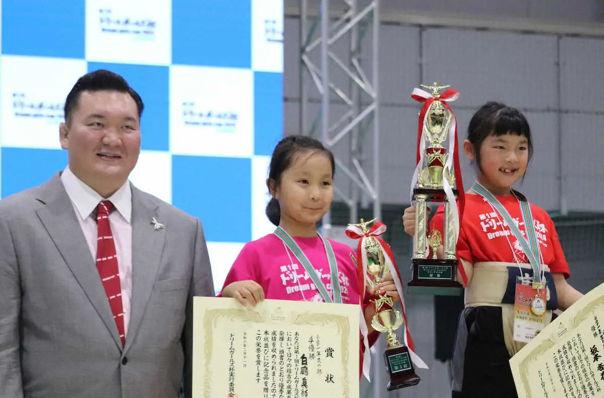 女子の相撲競技普及などを目的に創設され、宮城野親方(元横綱・白鵬)が応援サポーターに就任。大会には約200人がエントリーし、宮城野親方の三女・白鵬真結羽さんは小学1年生の部で準優勝となった。