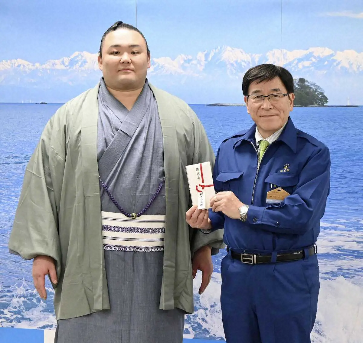 母親が氷見市出身で「正月は毎年、氷見の家でブリを食べるのが恒例だった」という。林市長は「本当にうれしく思う。朝乃山関の温かい気持ちを被災者の方々に届けたい」と感謝の意を示した。