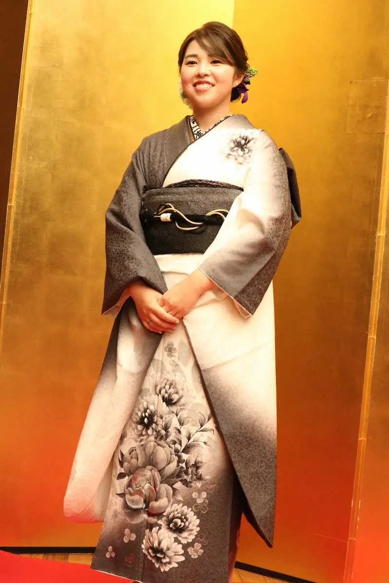 山下美夢有、パリ五輪出場を宣言「世界ランク15位以内に入ります!」 艶やかな振り袖姿も披露