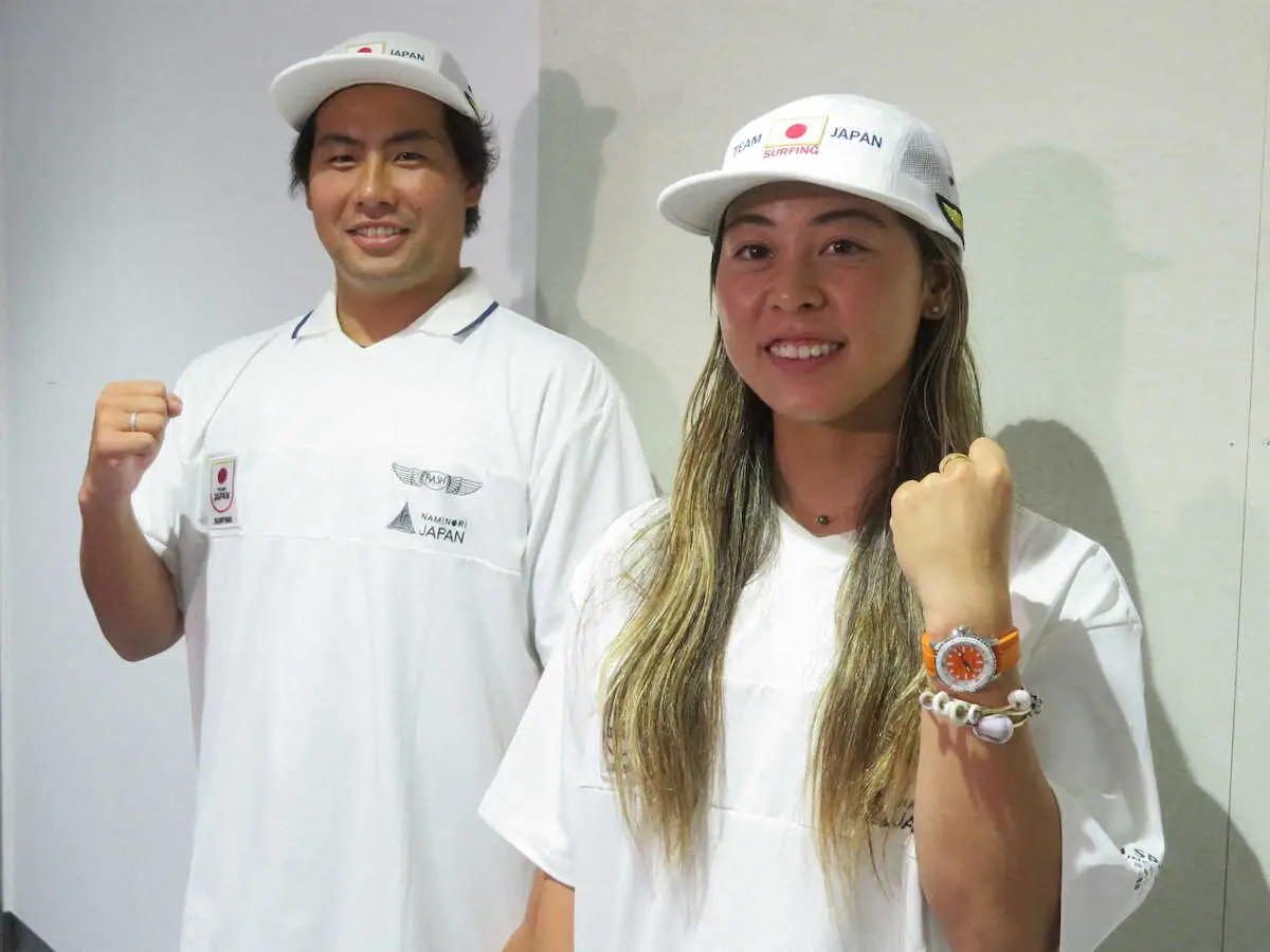 一方、昨年のWGの大陸別順位で五輪の条件付き出場権を獲得している稲葉玲王は、今大会に出場することで正式に代表に内定する。「全世界のトップ選手が全力で来るので、(五輪へ)いい練習になると思う」と抱負。女子は団体として国別1位になると、出場枠を追加で獲得できるため、「応援や波選びでサポートしたい」と話した。