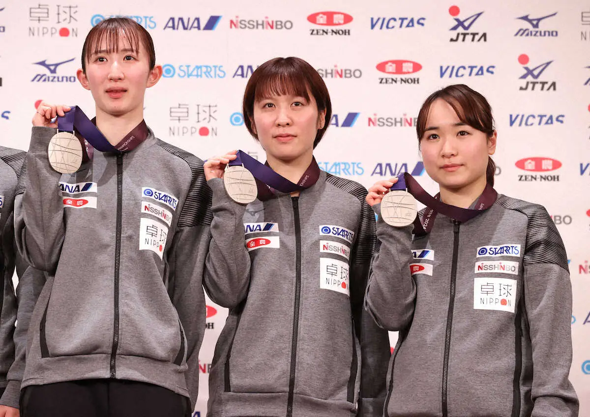 韓国・釜山で開催された卓球の世界選手権団体戦に出場した日本代表が26日、都内で会見を行った。