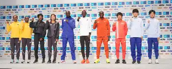 3日号砲の東京マラソンの男子招待選手会見が1日に都内で行われ、日本記録2時間4分56秒を持つ鈴木健吾(富士通)、同3位2時間5分51秒の山下一貴(三菱重工)、同4位2時間5分59秒の其田健也(JR東日本)が出席した。
