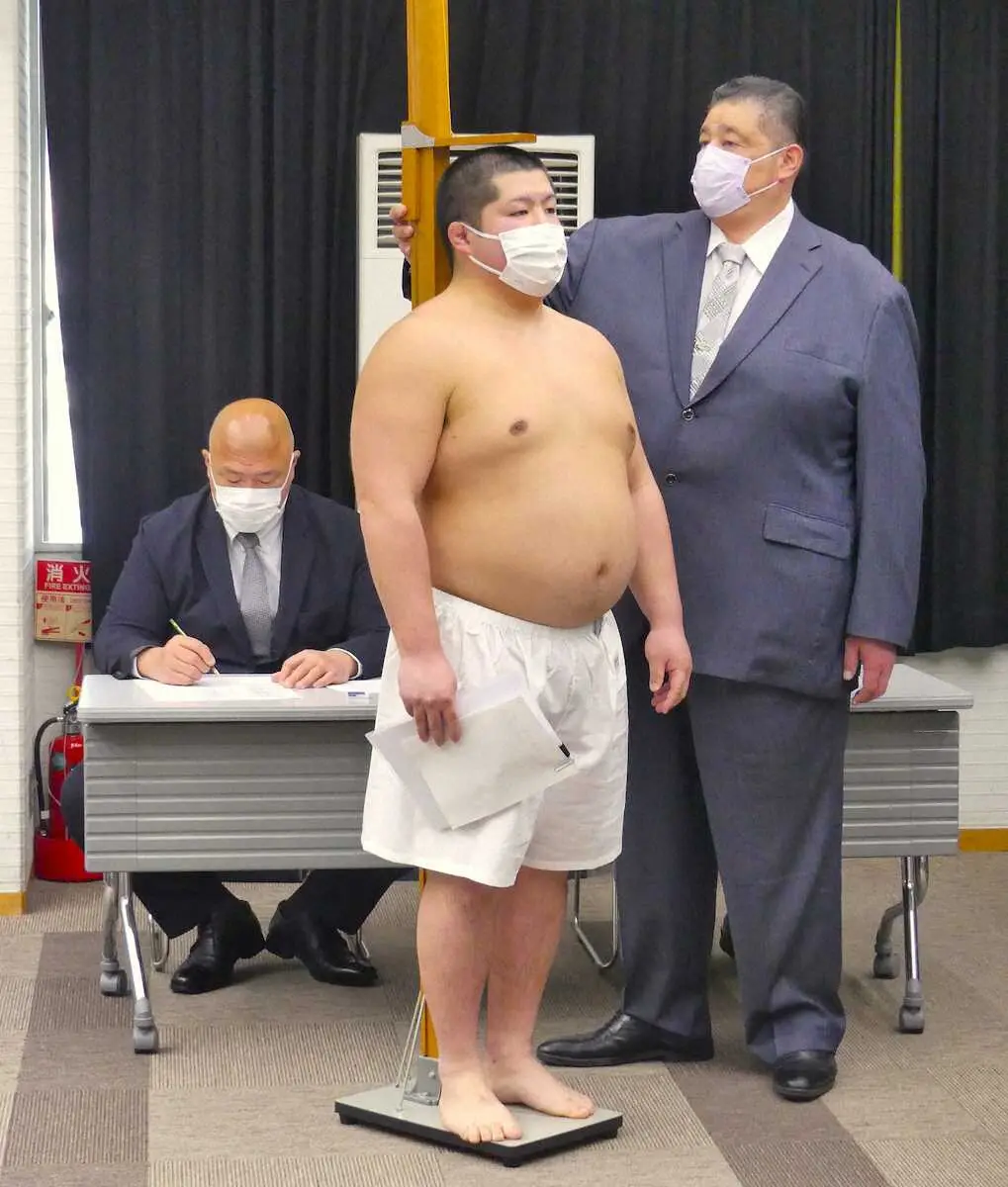 大相撲春場所(10日初日、エディオンアリーナ大阪)の新弟子検査が2日、大阪市内で行われ、受検した27人全員が身長1メートル67、体重67キロ以上(中学卒業見込み者は1メートル65、65キロ以上)の体格基準をクリアした。内臓検査の結果に問題がなければ春場所初日に合格が発表される。