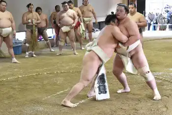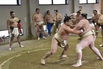 霧島が大関同士の三番稽古で琴ノ若に8勝3敗 二所一門の連合稽古に参加