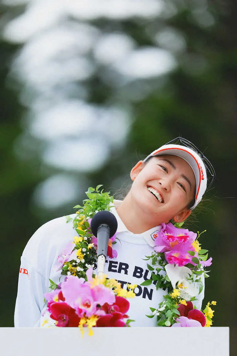 この優勝で世界ランクは現在の66位から50位近くに上がる見込み。「五輪も頭に入れながらプレーしていた」。目標の海外メジャー出場、その先のパリ五輪に向けても大きな1勝になった。