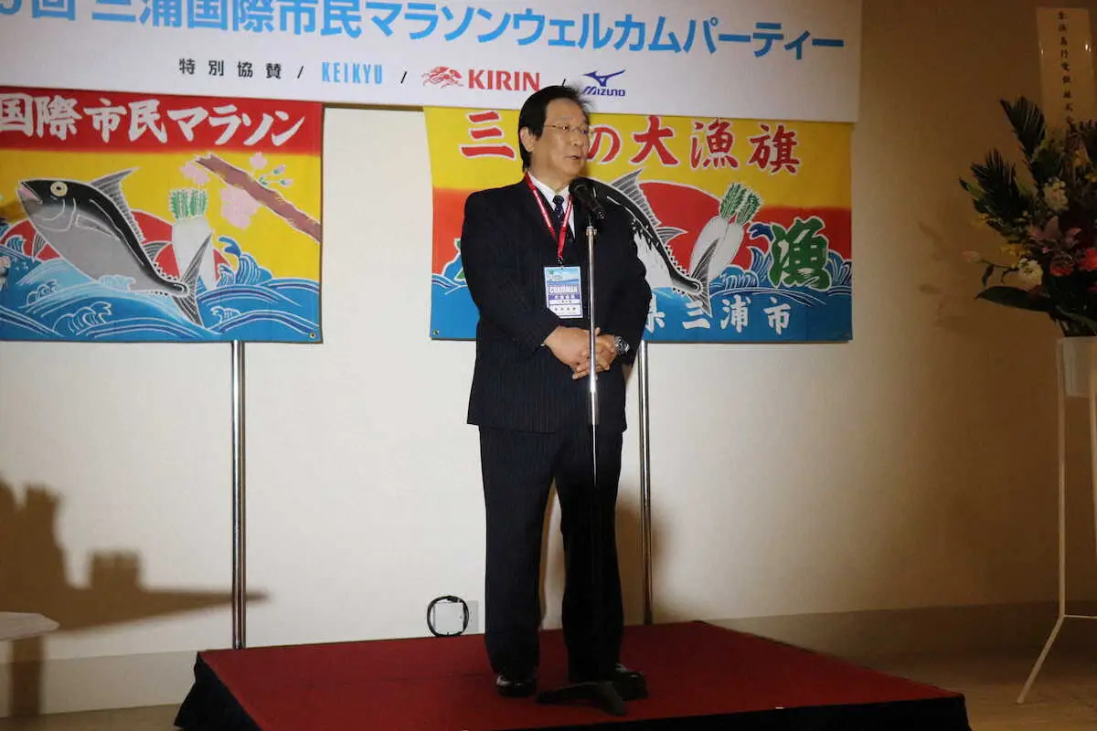 【三浦国際市民マラソン】ウエルカムパーティー 吉田市長が意欲「もっと成長」