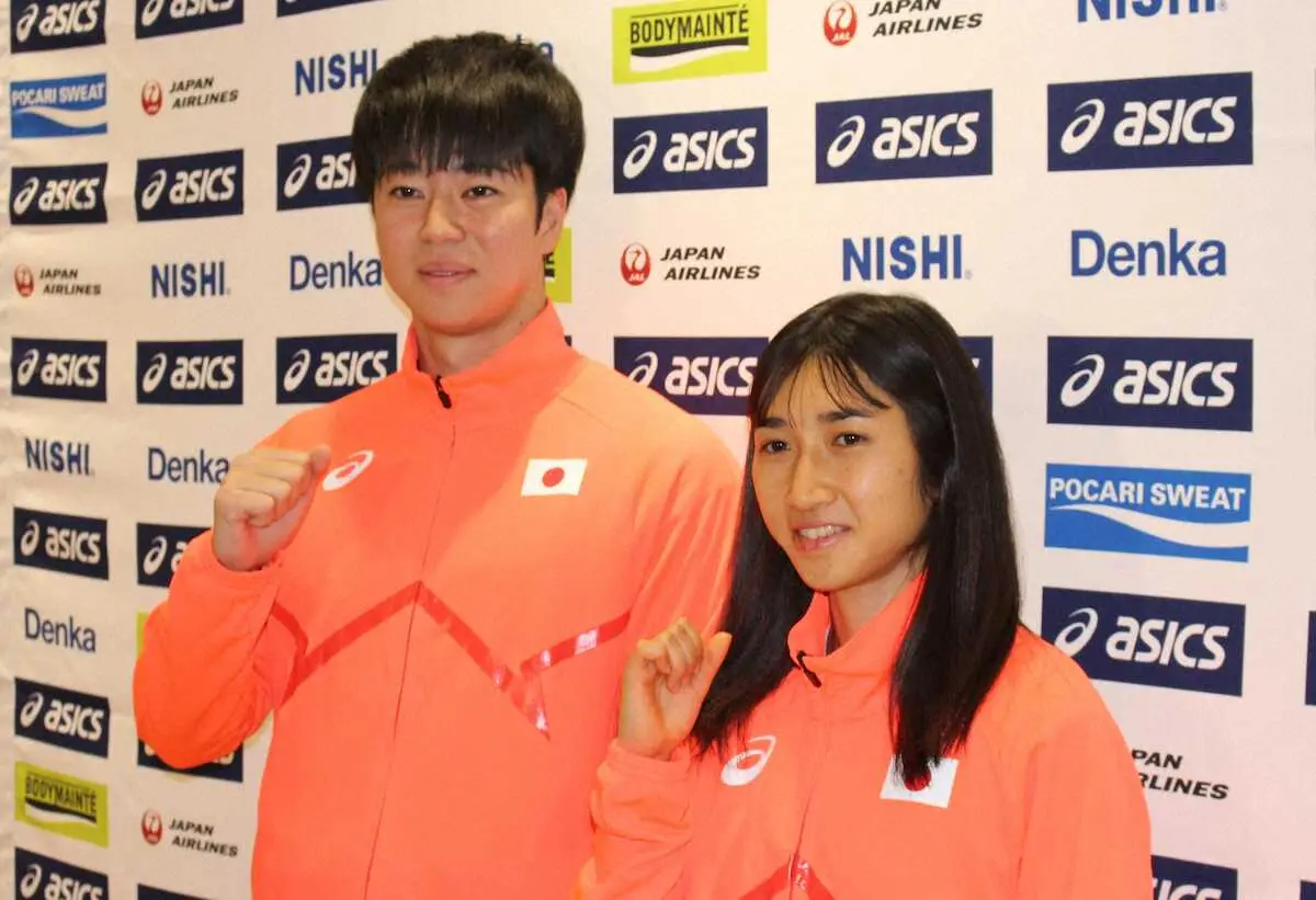 世界室内選手権から帰国した(左から)多田と田中(撮影・福永稔彦)2