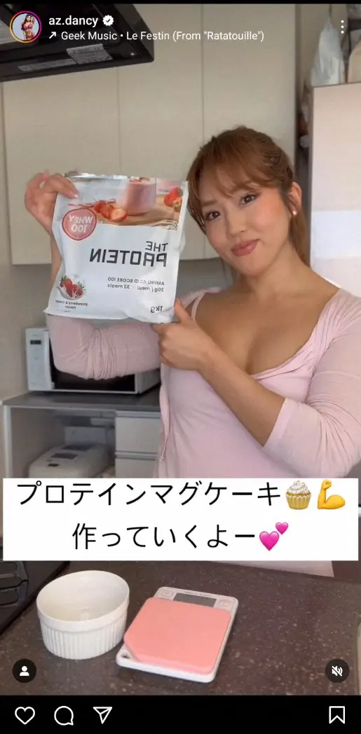 “ビキニ・アスリート”ダンシーあずさ プロテインマグケーキ作り披露に「美味しそう」「絶対つくります」