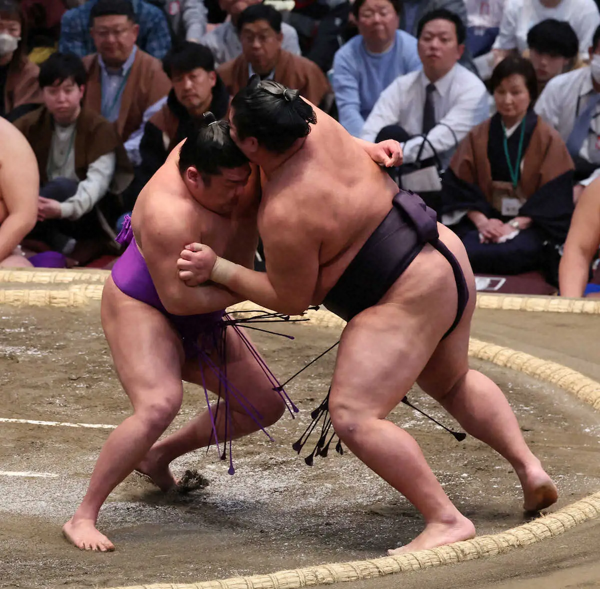 他の大関勢では、霧島が平幕・隆の勝に押し出しで敗れ5敗目。琴ノ若は平幕・明生を小手投げで撃破、貴景勝も小結・錦木を突き落としで下して2敗をキープした。
