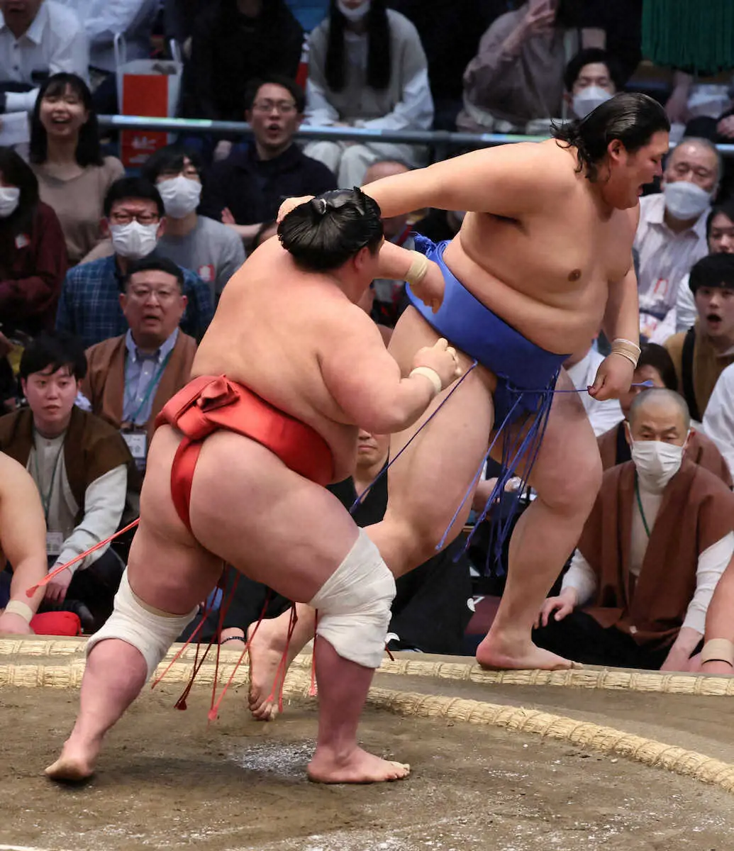 東前頭8枚目の阿武咲(27=阿武松部屋)が全勝の西前頭5枚目の大の里(23=二所ノ関部屋)をすくい投げで下し、初黒星を付けると共に自身は2敗を守った。