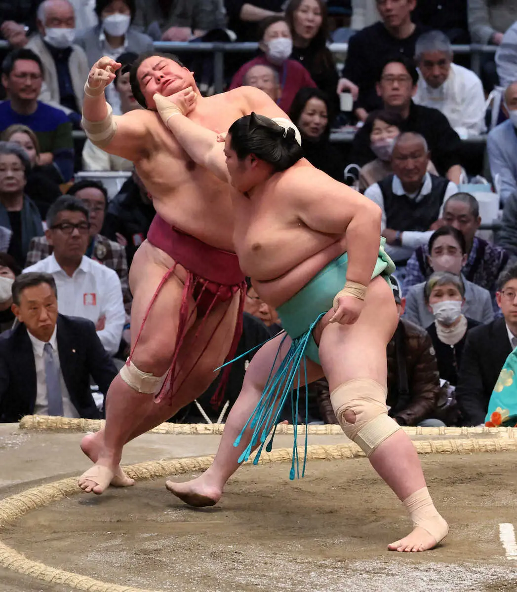<大相撲9日目>若元春を寄り切りで破る大の里(撮影・井垣 忠夫) Photo by スポニチ “荒れる春場所”またも4大関安泰ならず 豊昇龍が肩透かし食らい3敗後退 … ギャラリーで見る この記事のフォト 2024年03月18日の画像一覧 もっと見る 2024年03月18日の画像をもっと見る