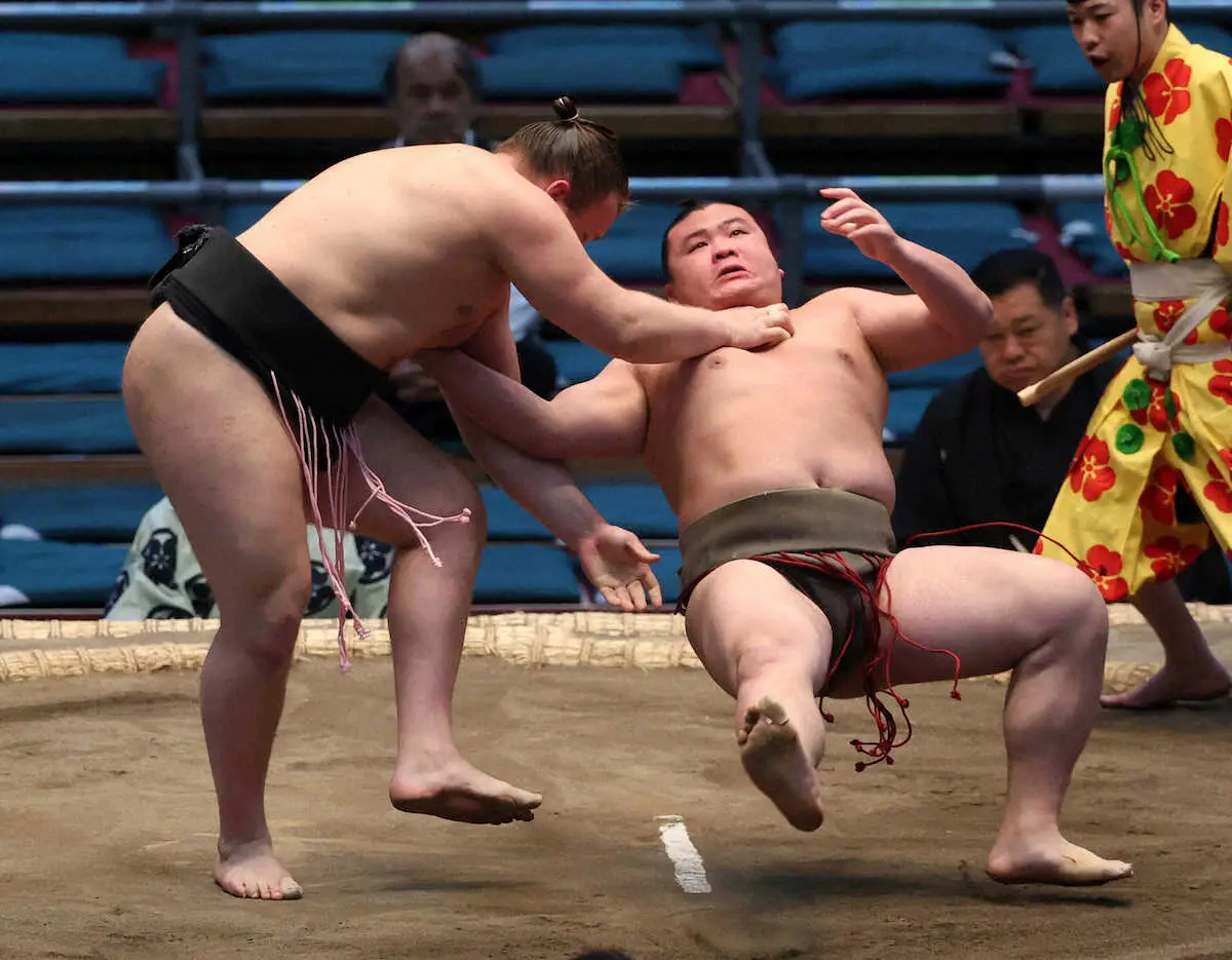 立ち合いすぐに左でまわしをつかむと、すぐに出し投げで崩してから左足を飛ばして「すそ払い」を繰り出した。鮮やかに決めたこの足技は、師匠の安治川親方(元関脇・安美錦)が現役時代に幕内で決めたこともある。「親方の動画をよく見ているので」と、見て学んだことを本場所の土俵で発揮した。