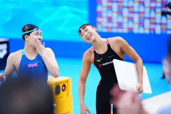 レース後、平井の横で笑顔を見せた池江は「言葉にならないくらいうれしいです。3番との差がギリギリだったので、タッチ差で勝てのは良かった。自分のレースを貫きました」とホッとした表情。「泣いていない自分に驚いている。達成感が大きい。神様が味方してくれた。改めて水泳に出合えて良かったと思う。もっともっと上にいきたい」と明るい声で語った。