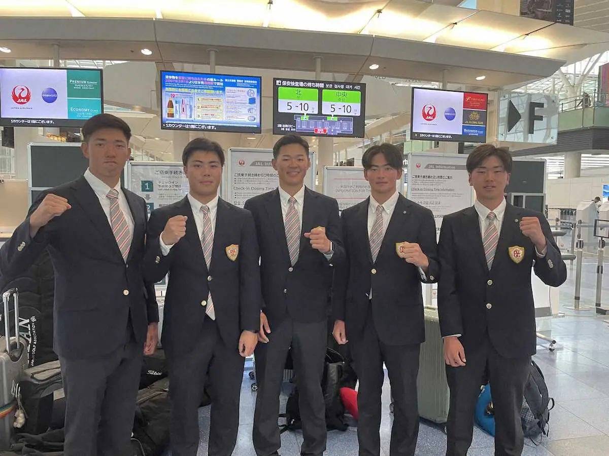 日本大学ゴルフ部の精鋭5人が米大学ゴルフのビッグイベント、ブリヂストン大学招待(25~27日、カリフォルニア州ナパ、シルベラドリゾートCC)に出場するため23日、東京・羽田空港から出発した。