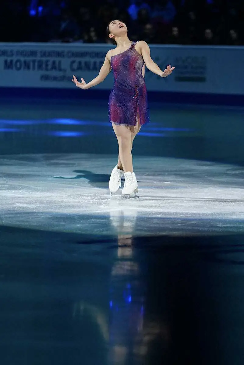 <世界フィギュアエキシビション>演技する坂本花織(撮影・長久保 豊)