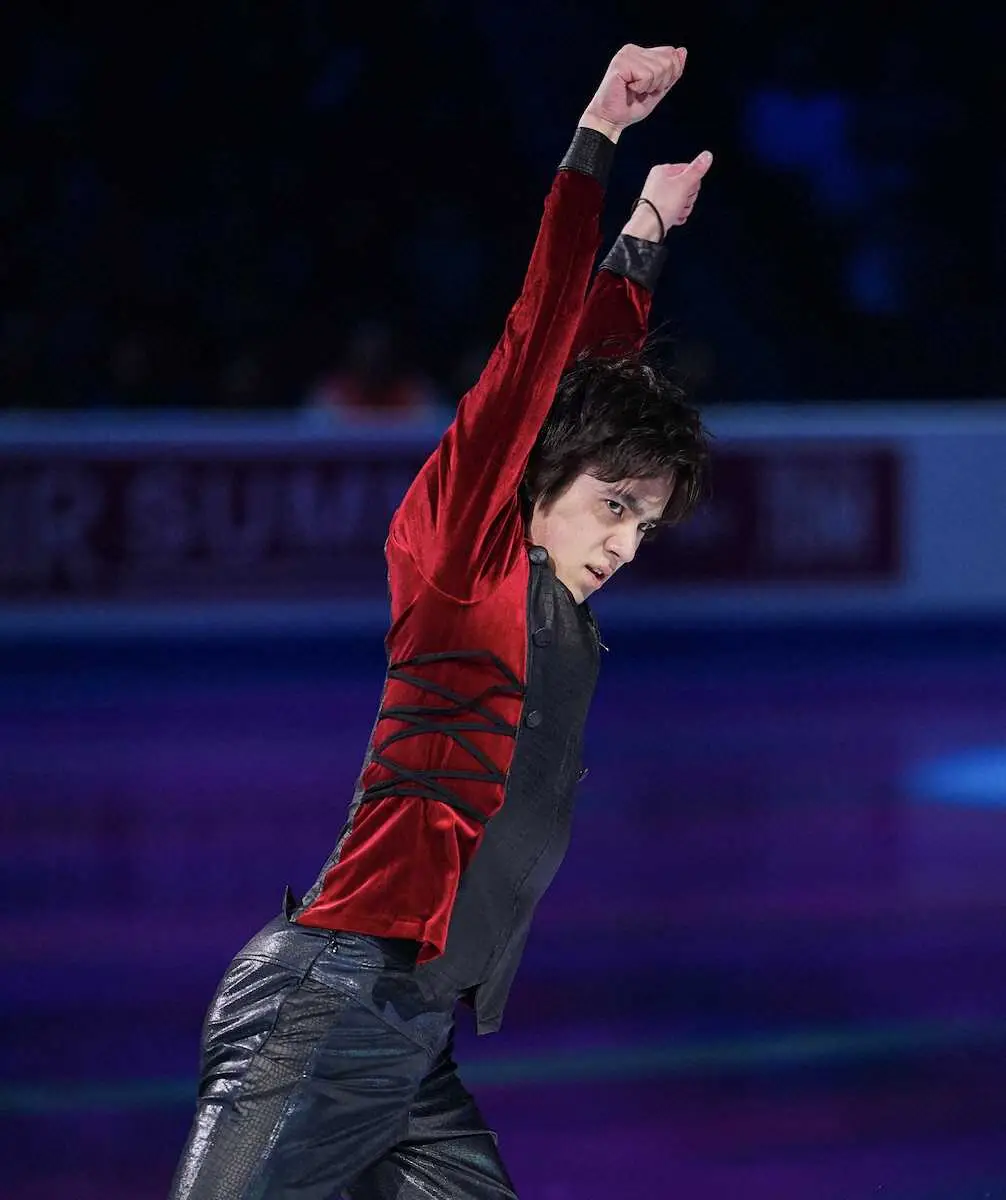 <世界フィギュア エキシビション>演技する宇野昌磨(撮影・長久保 豊)