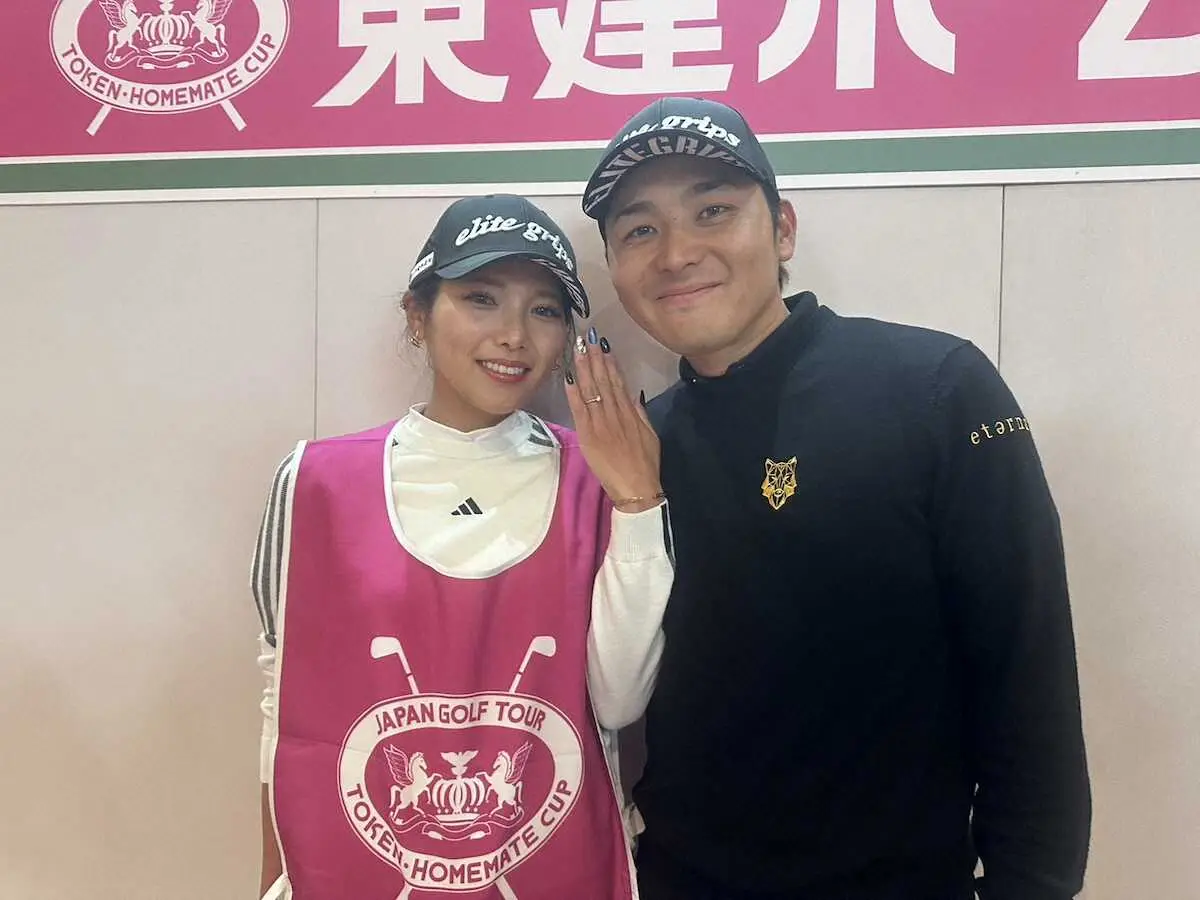 婚約を発表した、池村寛世とキャディの坂口琴音さん