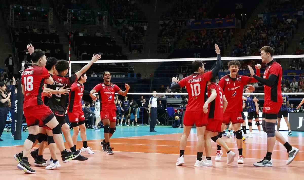 バレーボールのVリーグ1部男子プレーオフ決勝が31日、東京・有明コロシアムに9544人の大観衆を集めて行われ、レギュラーラウンド2位のサントリーが、同1位のパナソニックに3―0(25―18、37―35、25―19)で勝ち、2季ぶり10回目の優勝を飾った。