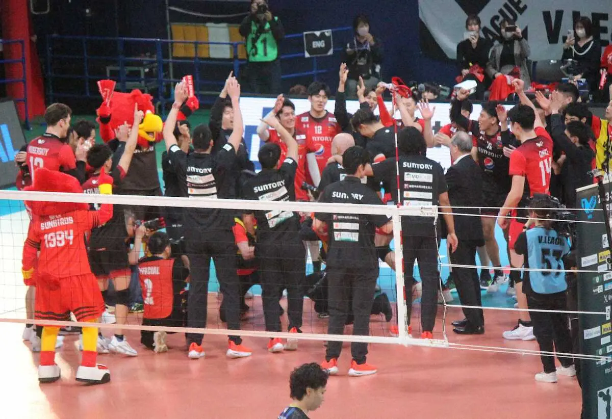 バレーボールVリーグ男子1部プレーオフ決勝が東京・有明コロシアムで行われ、レギュラーラウンド2位のサントリーが同1位のパナソニックを3―0で破り、2季ぶり10度目の優勝を飾った。サントリーは日本代表のデアルマス・アラインらが強打を決めて第1セットを25―18で先取した。ジュースにもつれた第2セットはドミトリー・ムセルスキーが終盤に得点を重ねて37―35で連取。第3セットも25―19で奪った。