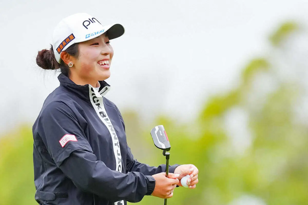 雨の中、第1ラウンドが行われ、ツアー未勝利の佐久間朱莉(21=大東建託)が6バーディー、1ボギーの5アンダー、67で回り、22年大会優勝の上田桃子(37=ZOZO)と並んで首位発進した。