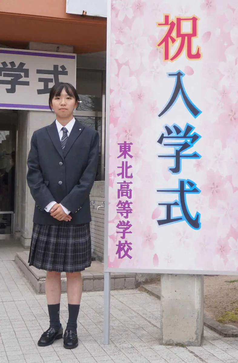 スケートボード女子ストリートの赤間凜音(15)が6日、出身の仙台市で宮城・東北高の入学式に出席。