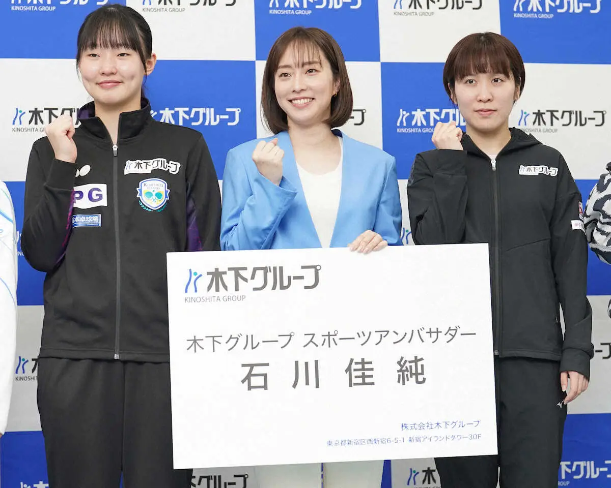卓球女子パリ五輪代表の平野美宇(23)、張本美和(15)が8日、都内で行われた所属の木下グループのイベントに出席した。同社スポーツアンバサダーに五輪3大会連続メダルの石川佳純さん(31)が就任。平野は銀メダルの東京五輪団体でダブルスを組んだ先輩から「(代表で)後輩が初めてできていろいろ教えていることもあると思う。チームワークの強さを楽しみにしている」とエールを送られた。