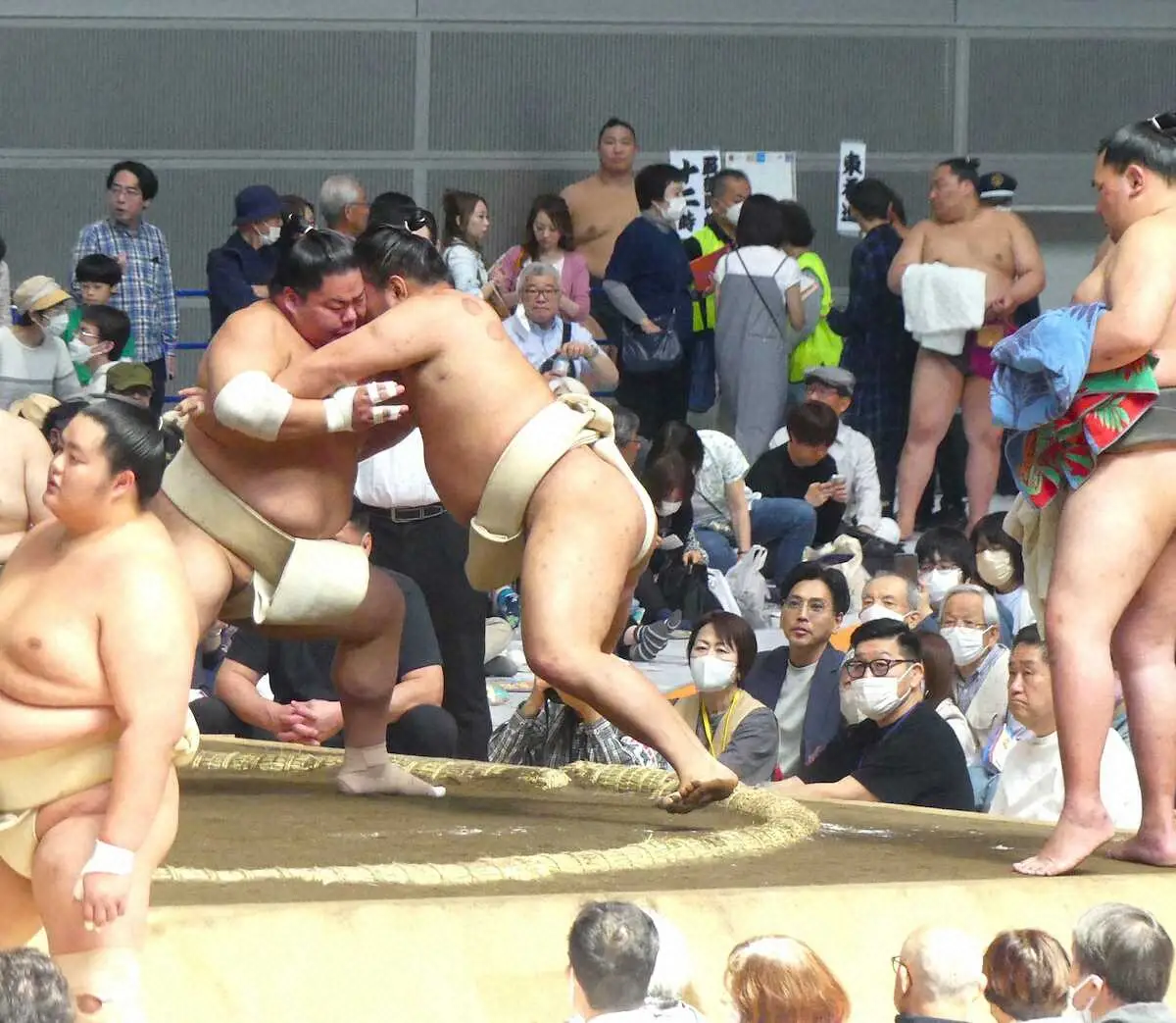 その中で王鵬と連続で7番。関脇・大栄翔(30=追手風部屋)や幕内・豪ノ山(26=武隈部屋)ら同校OB力士たちも土俵に上がっており、埼玉栄の稽古場さながらの雰囲気となった。