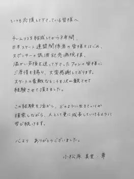 連名でコメントを発表し、スケート連盟やスポンサー、ファンなどへの感謝を示した上で「この経験を生かし、どのように生きていくか模索しながら、人としてさらに成長していけるように学び続けます。心よりありがとうございました」とした。