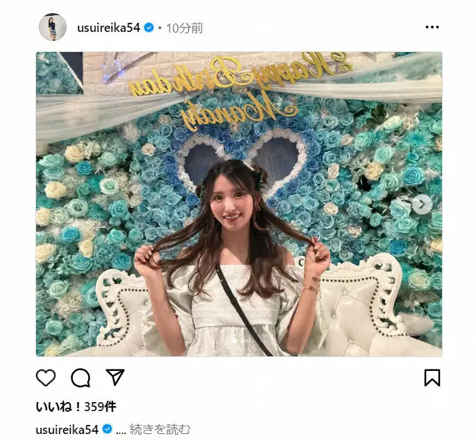 臼井はオフショルダーの白いワンピ―ス姿の写真も披露。フォロワーからは「僕の推しはれいちぇるです」「何故そんなに可愛いの?」と絶賛の声が寄せられた。