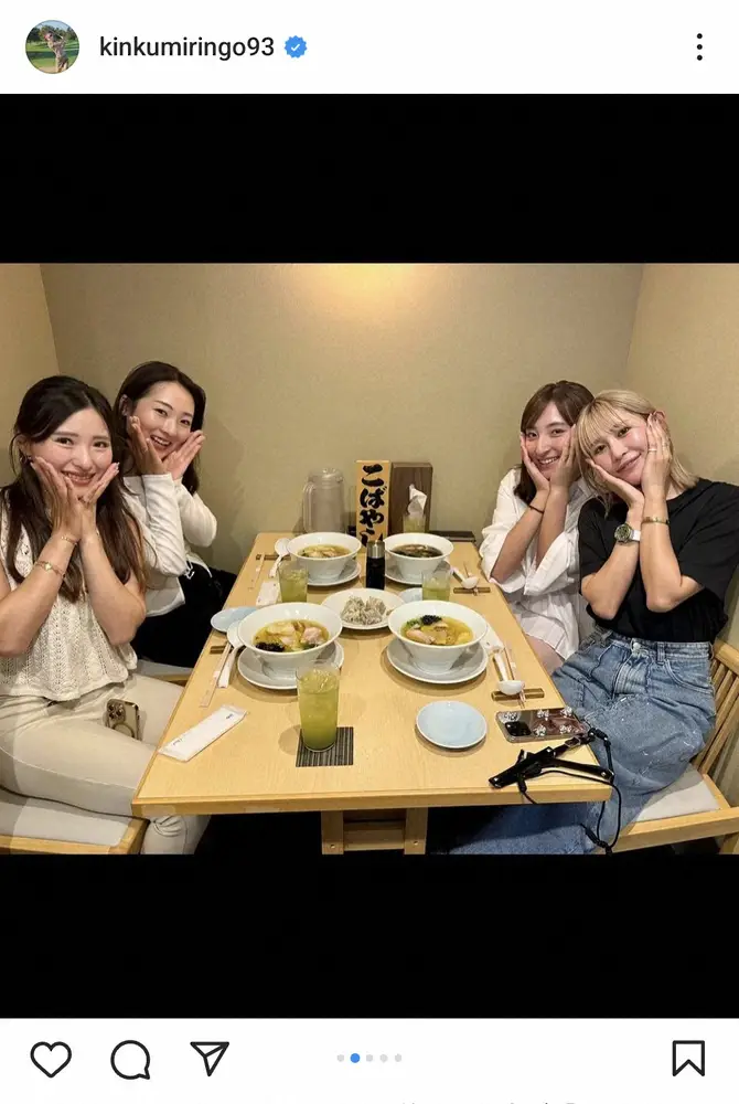 プロゴルファーの金田久美子(34=スタンレー電気)が26日までに自身のインスタグラムを更新。ゴルファー仲間との食事会ショットを披露した。