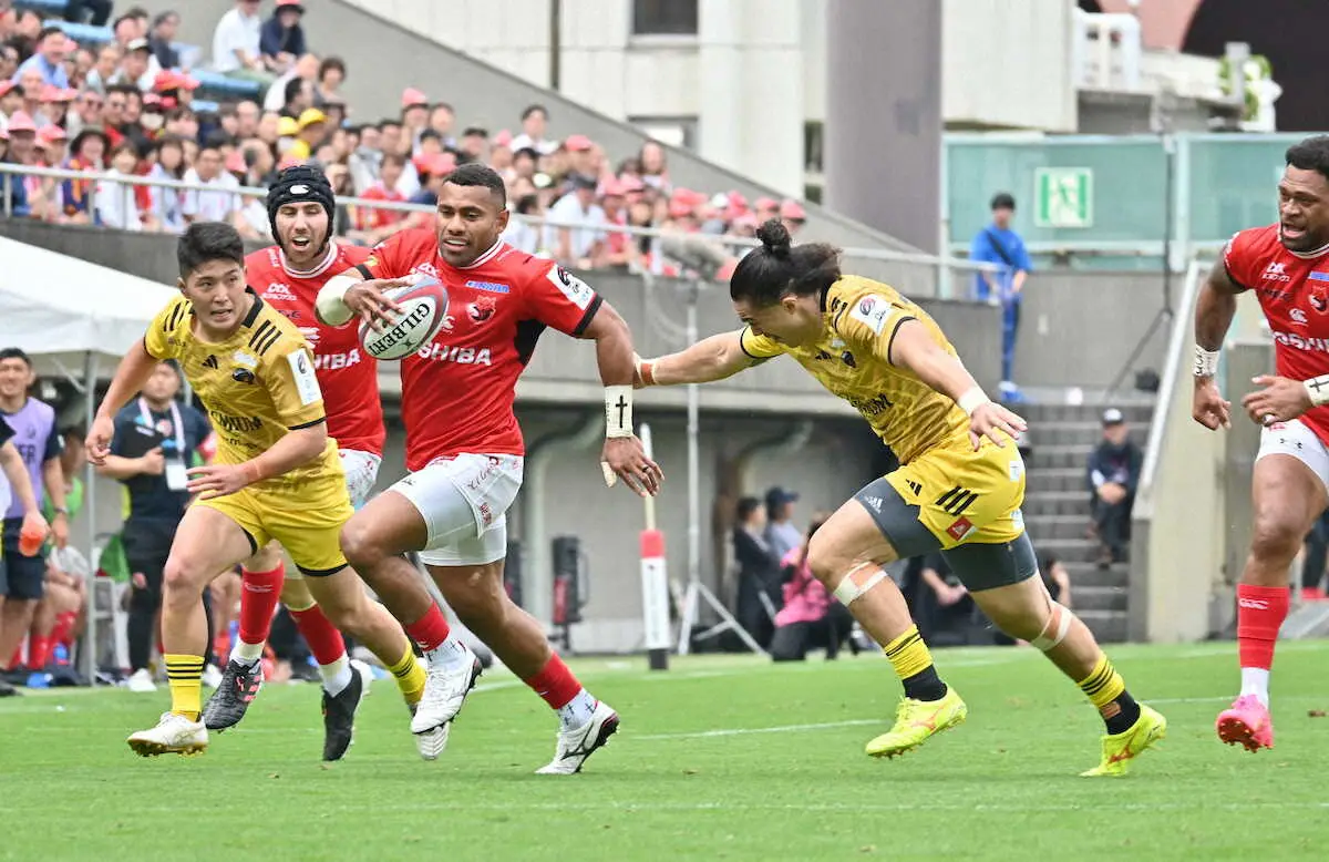 BL東京は右ふくらはぎの肉離れから前節で2カ月ぶりに復帰したNo・8リーチ主将が先発復帰。身内の不幸による一時帰国から、今週再来日したSOモウンガら一部を除いて主力がメンバーに名を連ねた。前半2分には2試合連続の10番となったSO中尾のPGで3点を先制。同11分には23年W杯日本代表のWTBナイカブラの突破からCTBタマニバルにトライが生まれ、10―0とリードを広げた。