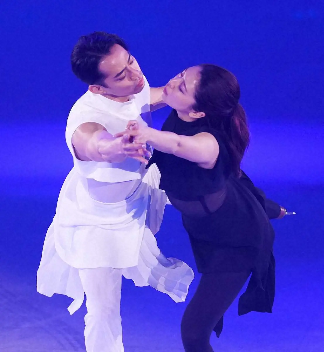ゲストスケーターとして参加した「かなだい」ことアイスダンスの村元哉中さん、高橋大輔さんは初めて2人で振り付けた「Symmetry」を披露。村元さんは黒、高橋さんは白と対照的な衣装でムーディーな世界観を醸し出し、滑らかな動きのリフトや息の合ったスケーティングなどで魅了した。