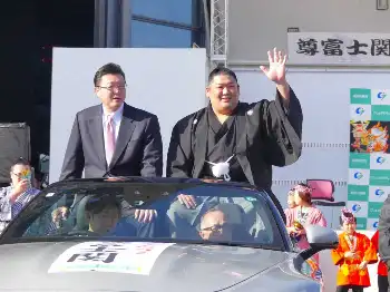 大相撲春場所で史上最速優勝、110年ぶりの新入幕優勝を果たした尊富士(25=伊勢ケ浜部屋)が1日、故郷・青森県五所川原市の金木地区と五所川原駅前の2カ所で凱旋パレードを行った。