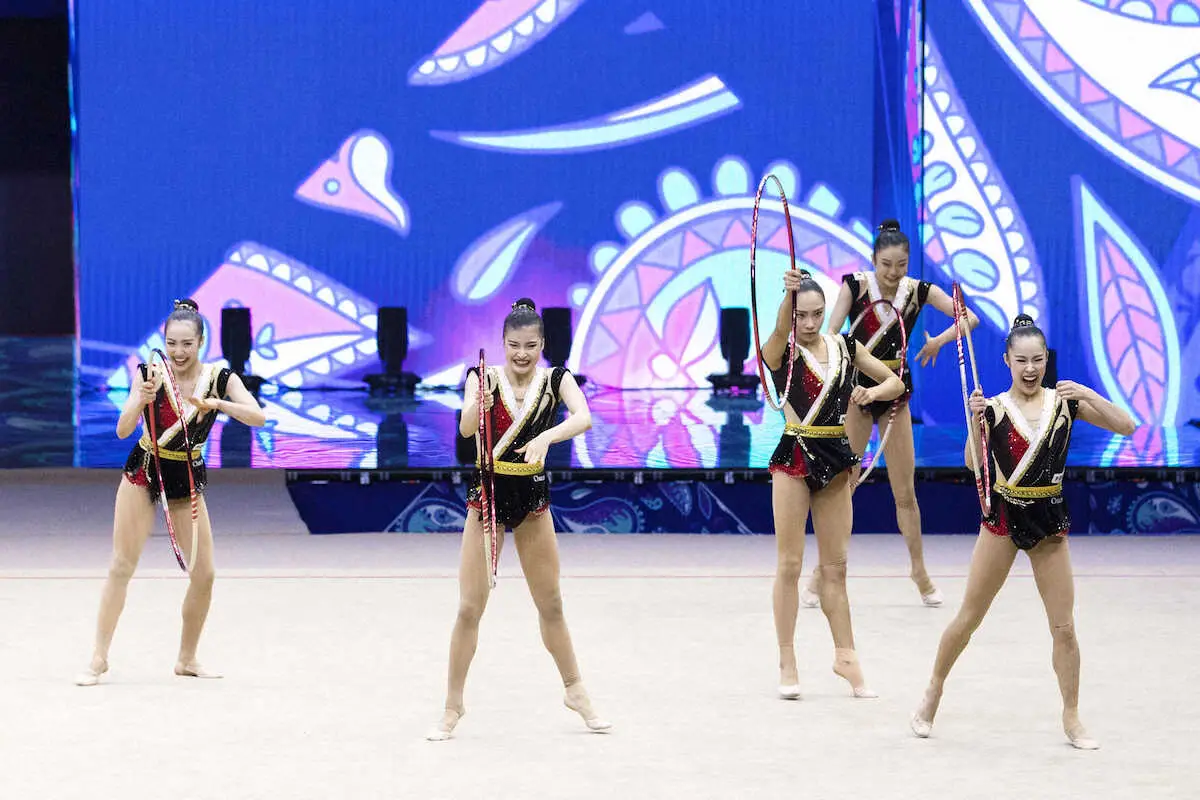 パリ五輪大陸別予選を兼ねて行われ、団体総合の日本代表「フェアリージャパンPOLA」はフープとリボン・ボールの2種目合計68・750点で2位だった。