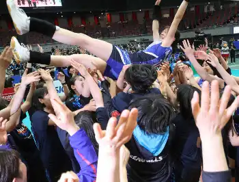 【黒鷲旗バレー】女子は岡山シーガルズ初優勝、今大会限りで引退の宮下を胴上げ 男子はサントリーがV