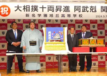 (左から)埼玉栄高相撲部の山田道紀監督、元幕内・栃栄の三保ケ関親方、新十両の塚原改め栃大海、町田弦校長、元関脇・栃煌山の清見潟親方(撮影・前川 晋作) Photo by スポニチ 苦節6年で新十両の塚原改め栃大海に「負けない気持ちを強く持って」埼玉栄… 2024年05月08日の画像一覧 もっと見る 2024年05月08日の画像をもっと見る