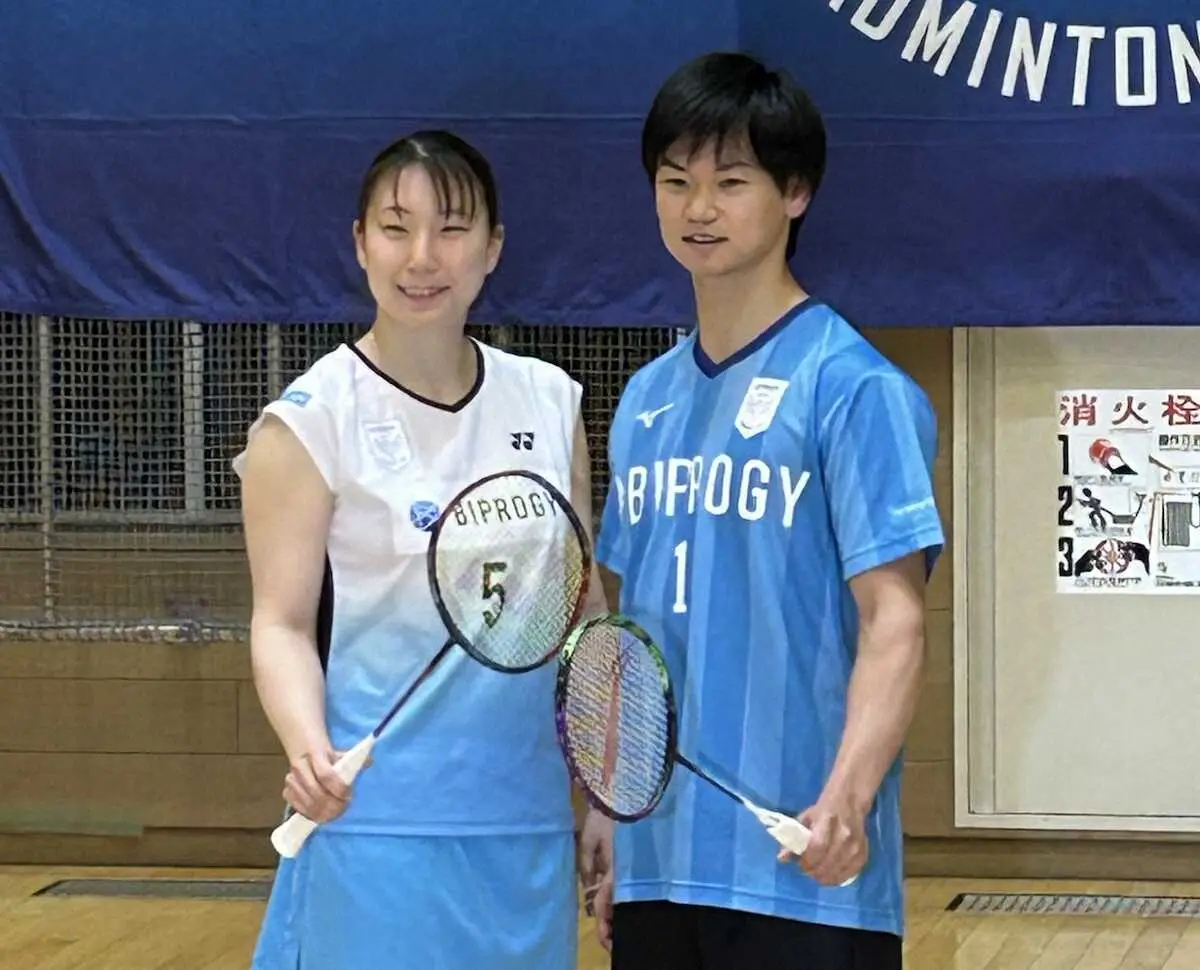 バドミントンの混合ダブルスでパリ五輪代表に内定した渡辺勇大・東野有紗組(BIPROGY)が10日、都内で行われた所属チームの公開練習に参加した。