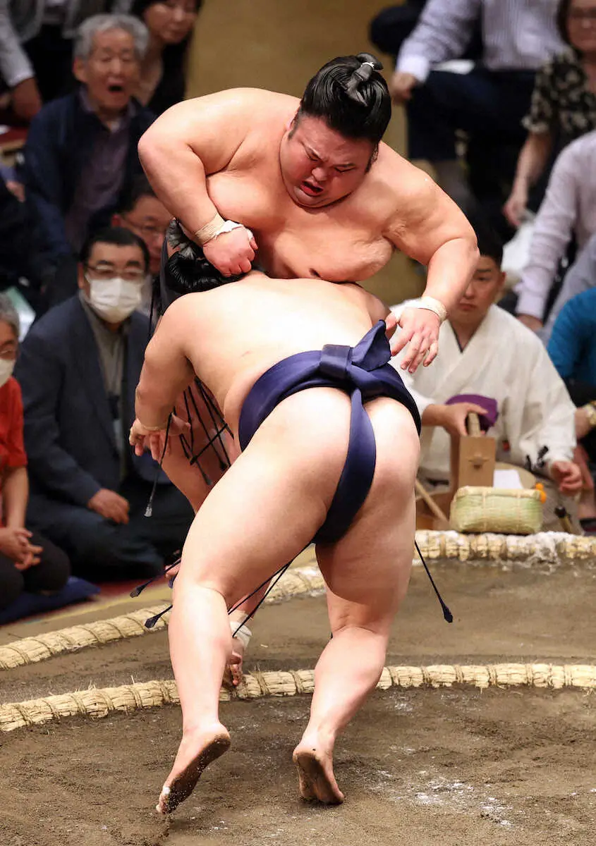 初日横綱撃破の大の里は連勝ならず 高安の圧力に屈する
