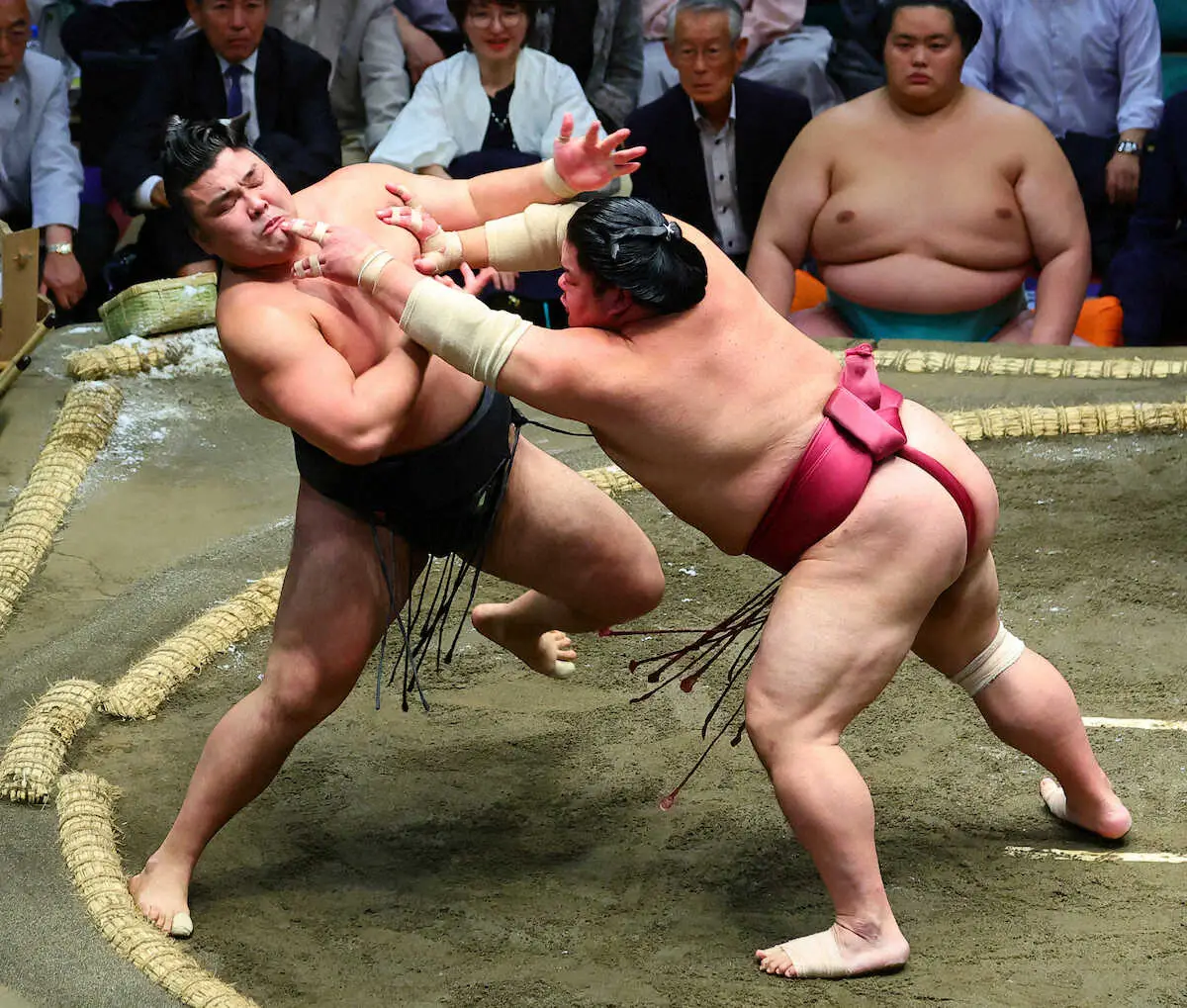 結びの一番では豊昇龍が平戸海の攻めに苦戦するも、最後は寄り倒しで2勝目を挙げた。