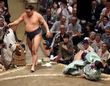 <夏場所4日目>豊昇龍(手前)に寄り倒される平戸海と行司の木村庄之助(撮影・久冨木 修) Photo by スポニチ 行司・木村庄之助が2度も転倒するハプニング はかまの裾を踏まれるも、倒… ギャラリーで見る この記事のフォト 2024年05月16日の画像一覧 もっと見る 2024年05月16日の画像をもっと見る