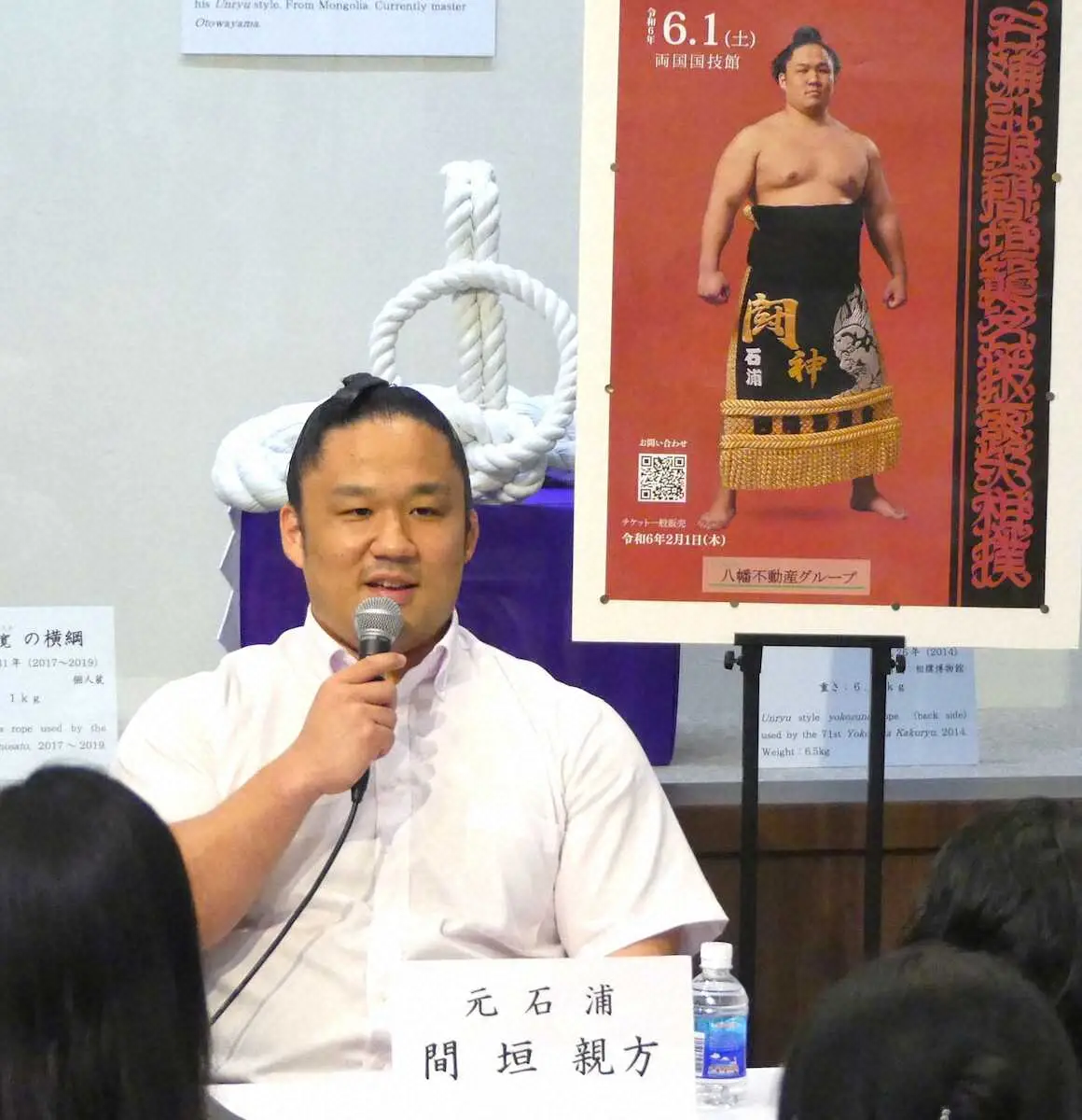 大相撲の間垣親方(元幕内・石浦)が21日、国技館内の相撲博物館で行われた「親方トークイベント」に出演した。司会進行を務めた熊ケ谷親方(元幕内・玉飛鳥)とともに軽妙なトークを展開して盛り上げた。