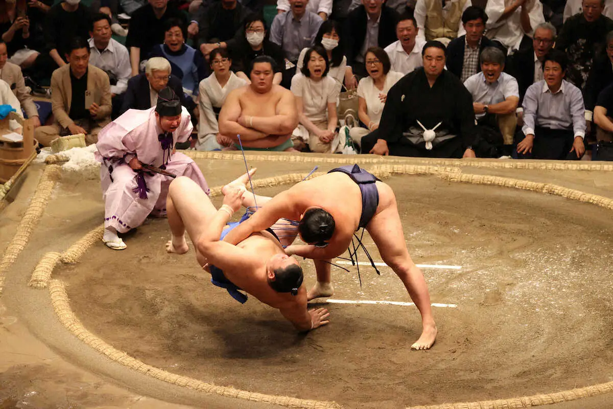 <大相撲夏場所11日目>大の里(左)を下手投げで破る豊昇龍(撮影・小海途 良幹) Photo by スポニチ 豊昇龍 大の里をぶん投げた!25歳バースデーにお得意さまから“内股”一本 ギャラリーで見る この記事のフォト 2024年05月23日の画像一覧 もっと見る 2024年05月23日の画像をもっと見る