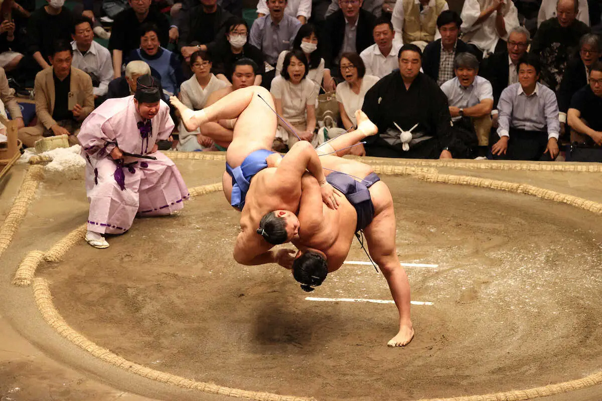 1学年下の大の里とは高校時代に1度対戦し内掛けで勝利。プロでは初、春場所と下手投げで2連勝中だった。「入門してすぐに三役に上がってきた。負けたくなかったし、しっかり勝とうと集中した」。立ち合いで相手に右差しを許したが、それも思惑通り。右手を出して動きを止め、右足で相手の左足をはね上げながら右手を振り上げる。1メートル92、181キロの巨体を背中から叩きつけた。モンゴルでは霧島と同じ柔道クラブに所属。内股のような大技を披露し、九重審判長(元大関・千代大海)は「叔父さん(元横綱・朝青龍)のようなバネ、瞬発力、体の切れ」と称賛した。