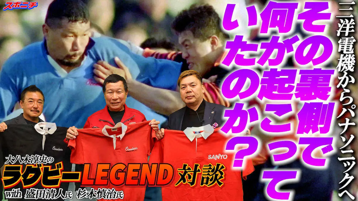 元ラグビー日本代表の大八木淳史氏(62)がゲストを招いてトークする「レジェンド対談」。第4弾は神戸製鋼の7連覇時代に、宿敵・三洋電機(埼玉パナソニックワイルドナイツ)のロックとして活躍した盛田清人氏(60)、神戸製鋼のフランカーとして7連覇に貢献した同僚杉本慎治氏(60)です。第3回は「神戸製鋼V7、その後の三洋電機」(対談映像はYouTube「スポニチチャンネル」で配信中です)