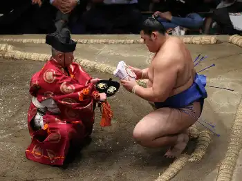 本割でつかみ取った初賜杯。割れんばかりの拍手を浴びながら優勝力士インタビューに臨んだ大の里は「ありがとうございます。1月、3月と優勝できなくて、こうしてチャンスをものにできてうれしいです。(優勝の瞬間は)歓声が凄くて、優勝したんだな、と」と一言一言かみしめるように語った。そして「土俵下では…昨日親方からは優勝しても喜ぶなと言われたので冷静に冷静に」と二所ノ関親方との前日秘話を笑顔で明かしていた。