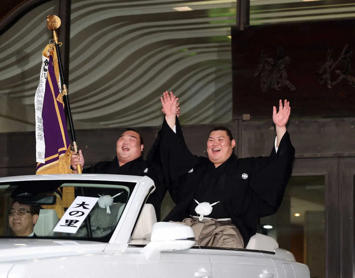 大相撲夏場所は26日、東京・両国国技館で千秋楽の取組が行われ、新小結・大の里(23=二所ノ関部屋)が関脇・阿炎(30=錣山部屋)に勝って12勝3敗で初優勝を決めた。初土俵から所要7場所で、幕下付け出しでは横綱・輪島の15場所を更新する史上最速優勝。新小結での優勝は1957年夏場所の安念山以来67年ぶりとなった。春場所の尊富士(25=伊勢ケ浜部屋)に続いて2場所連続の“ちょんまげ優勝”で、23歳の大器が横綱、大関陣に休場が相次いだ大混戦の場所を制した。